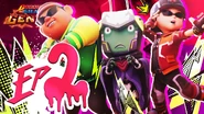 Raksasa yang digelar Rosaksa itu menghampiri dengan kesan dentangan dari luar dinding, maka Gentar dengan candangnya menarik perhatian Rosaksa dengan paluan Tukul Gentarnya. Rosaksa memecah masuk ke dalam dinding, menyebabkan mereka semua berlari lagi sambil mengheret Gentar. Adu Du sekali lagi melengahkan Rosaksa dengan anak panah tetapi sudah kehabisan, maka Gentar bertindak dengan meminta Gopal memegang tangannya supaya dia boleh "bersandiwara" untuk membentuk imejnya sebagai wira. Qually melemparkan Bom Lada Hitam untuk mengaburi Rosaksa, sementara Adu Du menunjuk ke arah pintu ventilasi supaya mereka dapat melarikan diri. Adu Du berikhtiar untuk melaksanakan "Pelan B," dan Gentar pun menduga "B untuk BoBoiBoy," membuat semua orang sebal.