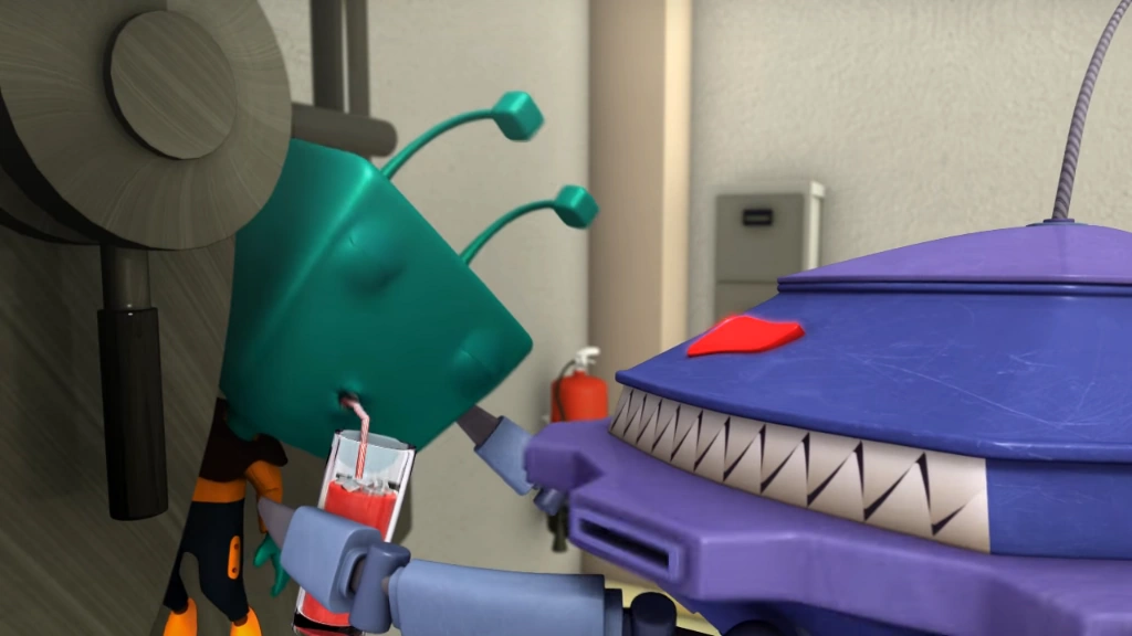 Maka Rob, Robert dan Roberto berebut-rebut untuk minum ais blended coklat strawberi yang sejuk itu, sehinggalah BoBoiBoy tampil di lubang jeli untuk menawarkan pelbagai minuman lain kepada mereka dan para tebusan secara percuma. Maka semua ahli di dalam bilik kebal minum sepuasnya sehingga perut mereka kekenyangan. Oleh itu, kita tiba di kemuncak rancangan menyelamat.
