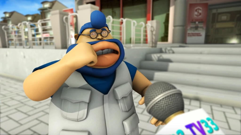 Berita rompakan bank ini menjadi tular melalui berita TV33 yang disampaikan oleh Ravi J. Jambul yang sendiri turut dijadikan tebusan dalam bank itu. Berita itu turut dipertontonkan semua orang yang berada di warung Tok Aba di mana Yaya, Ying, Gopal dan Fang berada. Maka Gopal terus menghubungi BoBoiBoy dan memberitahu tentang kes rompakan itu melalui jam tangannya. Maka terpaksa BoBoiBoy meninggalkan kerja membina reban ayam Makcik Kantin yang sekerat jalan untuk urusan yang penting itu.
