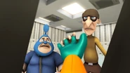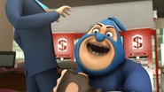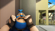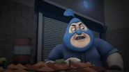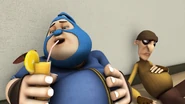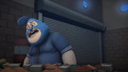 Dalam Musim 3, Episod 18, atas arahan Adu Du, Tiga Rob telah mencuri semua burger dari seluruh gerai burger di Pulau Rintis termasuklah Burgerriak, iaitu gerai Pakcik Mat. Menggunakan Robot Pango yang mengalami ketidakstabilan enjin, Tiga Rob melarikan diri dari pihak polis dan kemudian dikejar oleh BoBoiBoy Taufan. Mereka berjaya bersembunyi dari BoBoiBoy Halilintar di sebuah lorong kawasan perumahan, tetapi pihak polis berjaya menemui mereka maka mereka terus melarikan diri. Mereka dihalang oleh Adu Du di hujung lorong dan tidak lama selepas itu, BoBoiBot Api muncul dan menggulingkan mereka ke dalam trak polis.