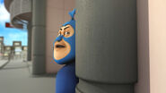 Rob memakai kain yang menutupi hidung dan seluruh kepalanya. Dia memakai baju yang berwarna biru gelap dan sarung tangan dan seluar yang berwarna hitam.