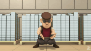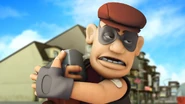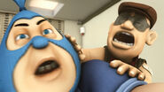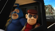 Dalam Musim 3, Episod 18, atas arahan Adu Du, Tiga Rob telah mencuri semua burger dari seluruh gerai burger di Pulau Rintis termasuklah Burgerriak, iaitu gerai Pakcik Mat. Menggunakan Robot Pango yang mengalami ketidakstabilan enjin, Tiga Rob melarikan diri dari pihak polis dan kemudian dikejar oleh BoBoiBoy Taufan. Mereka berjaya bersembunyi dari BoBoiBoy Halilintar di sebuah lorong kawasan perumahan, tetapi pihak polis berjaya menemui mereka maka mereka terus melarikan diri. Mereka dihalang oleh Adu Du di hujung lorong dan tidak lama selepas itu, BoBoiBot Api muncul dan menggulingkan mereka ke dalam trak polis.