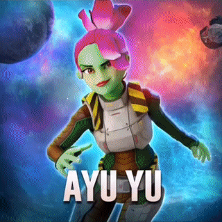 Ayu Yu first appeared in BoBoiBoy Movie 2. Adu Du fell in love with her, similar to Kiki Ta in BoBoiBoy The Movie. After Adu Du got a curve in his head and had some brain damage, he became Padu Du after training with Tok Kasa at Planet Quabaq. He fought the other crystal miners to 'protect' Ayu Yu, not knowing she is part of the Crystal Miners gang. He called Ayu Yu his love and Ayu Yu hit him with a crystal on his head, leading to the curve in his head to return flat.