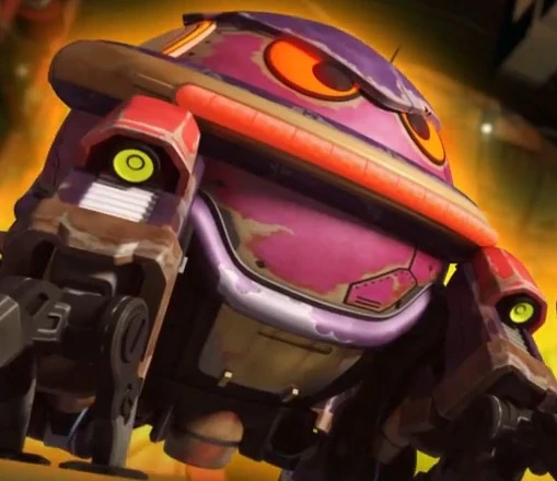 CopyBot has the same body size as Klamkabot, but with a spherical shape. His body iron is dark purple. His eyes are dark orange. There is an iron coil that surrounds his body with a red line that serves as a mouth. All his legs have the same shape as a moving machine. If you look at the iron parts of his body, it may have been created using disposable or used iron found on Planet Junkberg.