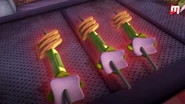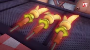 In Copy and Paste, while looking for a replacement for the spacecraft, Gopal stops by this food stall and picks up all the food. The stall again appears in the episode The Guardian Robot when BoBoiBoy asks the stall owner if he knows a place that looks like an old archive on Planet Junkberg, but he says no. Then Gopal took the opportunity to ask for 10 prickly food from the owner.