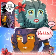 Rokkiah appears to belong to the same alien species as Roktaroka. However, while Roktaroka has the characteristics of a volcanic rock in connection with its atmosphere, mood, and appearance, Rokkiah is different. She resembles a crystal or other rock kinds, indicating that she may have adapted to a different environment. even so, both seem to be part of the same alien race.
