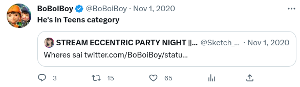 Upon arriving back at the TAPOPS station, he compliments BoBoiBoy’s outstanding combat skills in lieu of an apology.